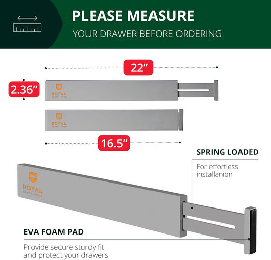 ROYAL CRAFT WOOD Adjustable Bamboo Drawer Dividers Organizers - Expandable Drawer Organization Separators For Kitchen, Dresser, Bedroom, Bathroom and Office, 4-Pack (Large (up to 22")) (Gray)