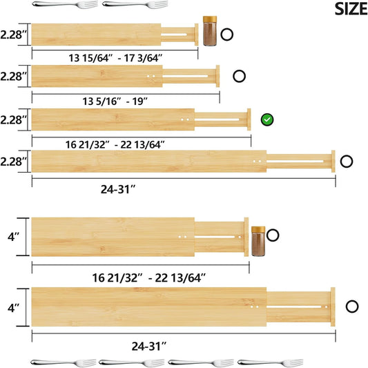 BAMEOS Drawer Dividers kitchen Organization Bamboo Utensil Organizers for Kitchen Bedroom Bathroom Dresser Office 4-pack