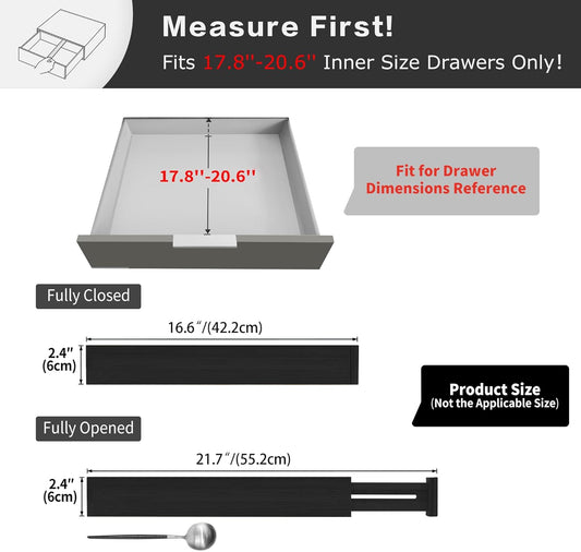 Night Tree Expandable Bamboo Drawer Dividers – Spring-Loaded Wooden Organizers for Clothes, Kitchen Utensils, Bathroom, and Dresser Drawers (17.5" to 21.5")