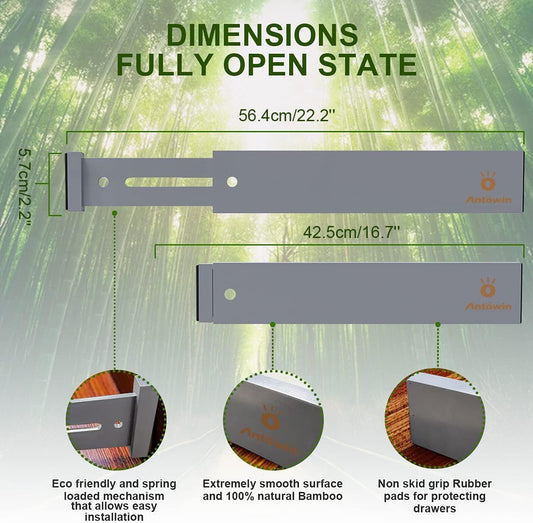 ANTOWIN Bamboo Drawer Dividers Organizers, Expandable Drawer Separators Splitter,17-22 inches Long Adjustable Spring-loaded Organizer for Large Utensil, Clothes, Tools Drawers (Grey)