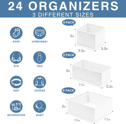 DIMJ Drawer Organizer Clothes 24 Pack - Foldable Baby Organizers and Storage & Dresser Organizer for Bedroom, Closet - Nursery Organization Dresser Dividers for underwear, Sock,Bra, Belt, Tie
