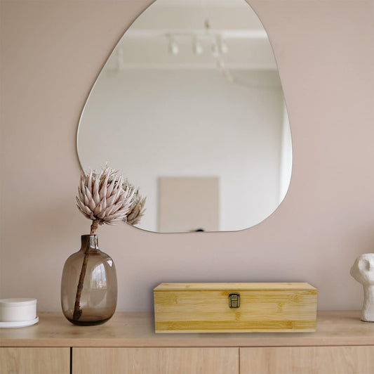Tea Organizer Box 7.4" x 8.1" x 4.2" Bamboo Wood Organizer Storage Chest 4 Tall Adjustable Slots 100% Handmade Eco-Friendly Natural Kitchen Décor