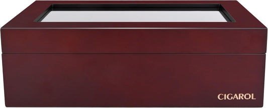 CIGAROL Luxury Wooden Tea Box Organizer – 6 Compartment Storage Chest with Scratch-Resistant Glass Lid – Ideal for Tea Bags, Coffee Pods, Spices, or Office Supplies
