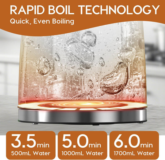 Electric Tea Kettle, 1500W Electric Kettle for Boiling Water, Food Grade Stainless Steel 2L Tea Kettle with Ergonomic Handle, Hot Water Boiler Auto Shut-off, Boil-Dry Protection