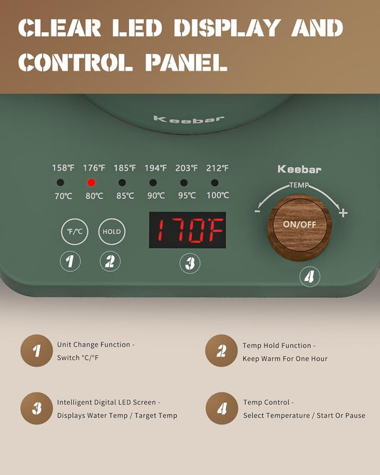 Electric Kettles, Gooseneck Electric Kettle, ±1℉ Temperature Control, Stainless Steel Inner, Quick Heating, for Pour Over Coffee, Brew Tea, Boil Hot Water, 0.9L Hunter Green
