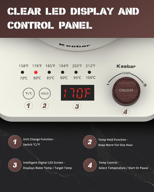 Electric Kettle 1.0L 1200W, 7 Temp Settings, 4H Keep-Warm, Fast-Boil Stainless Steel Electric Tea Kettle, 120V Water Boiler with Auto-Shut Off, Cool Touch PP Exterior for Home Office, White