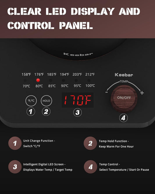 Electric Kettle 1.0L 1200W, 7 Temp Settings, 4H Keep-Warm, Fast-Boil Stainless Steel Electric Tea Kettle, 120V Water Boiler with Auto-Shut Off, Cool Touch PP Exterior for Home Office, Black