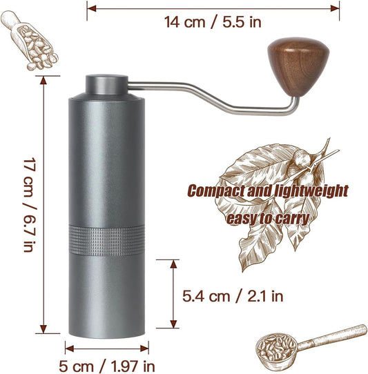 Manual Coffee Grinder - Precision CNC Stainless Steel Burr Grinder with Adjustable Settings, Grey Blue, Double Bearings for Smooth Grinding - Ideal for Home, Office, and Camping Espresso Enthusiasts