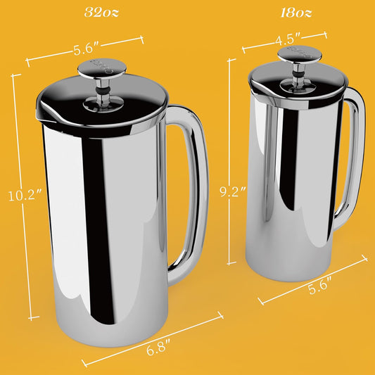 Secura French Press Coffee Maker, 304 Grade Stainless Steel Insulated Coffee Press with 2 Extra Screens, 34oz (1 Litre), Coffee