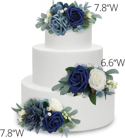 Rinlong 3Pcs Pre-made Cake Flowers Navy Blue Cake Decorations Wedding Cake Decorating Flowers Decor Christening Birthday Baby Shower Baptism Party Cake Toppers