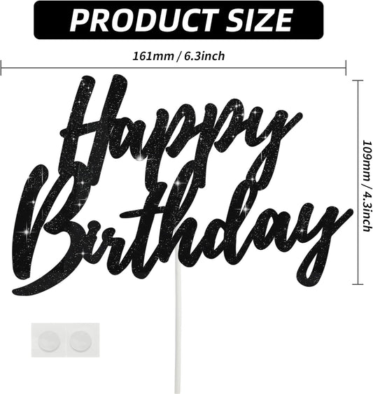 Happy Birthday Cake Topper - Glitter Black Birthday Cake Top Decorations (Black)