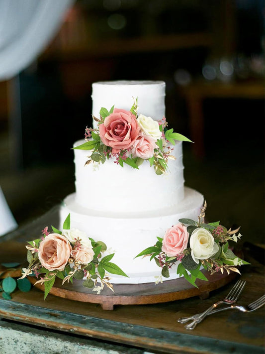 Rinlong 3Pcs Cake Topper Set Artificial Flowers for Cake Decor Burnt Orange Fall Wedding Cake Decorating Flowers for Baby Shower Birthday Party