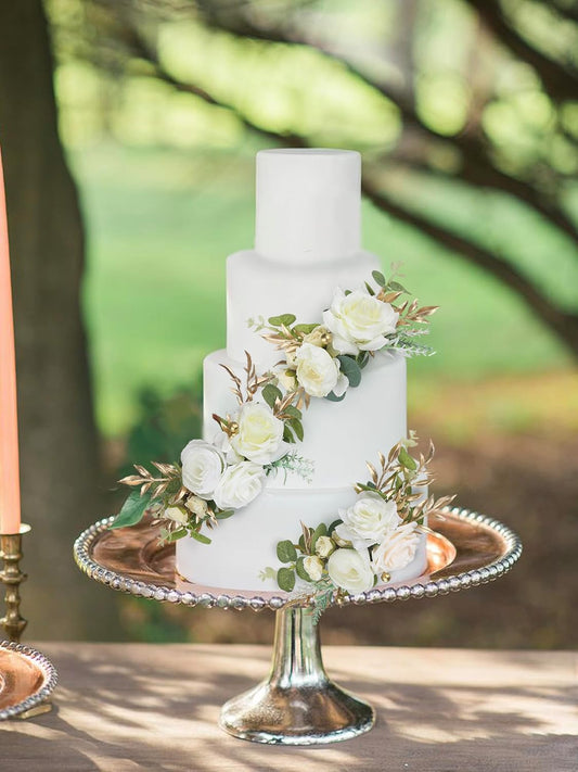Rinlong 3Pcs Pre-made Cake Toppers Flowers Cake Decorations Wedding Cake Decorating Flowers Decor Christening Birthday Baptism Baby Shower Party Cake Topper Flower Arrangements White Gold