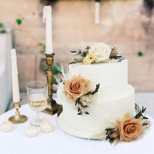 Rinlong 3Pcs Pre-made Boho Cake Toppers Pampas Cake Decorations Birthday Wedding Cake Decorating Flowers Baptism Decor for Women Girls