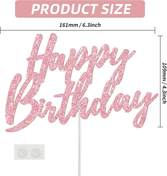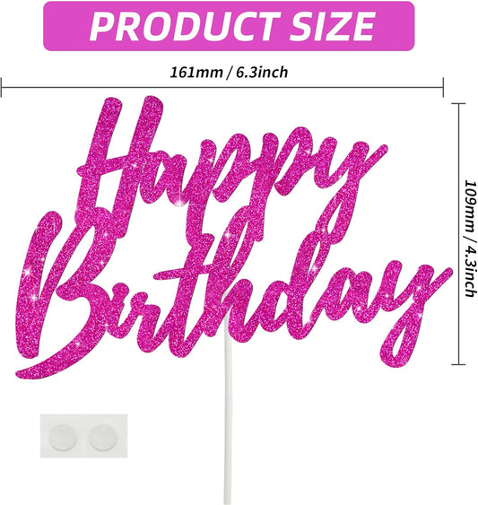 BEISHIDA Happy Birthday Cake Topper - Hot Pink Glitter Birthday Cake Decoration for Girl's Women's Birthday 18th 30th 40th Birthday Cake Topper Birthday Party Photo Booth Props