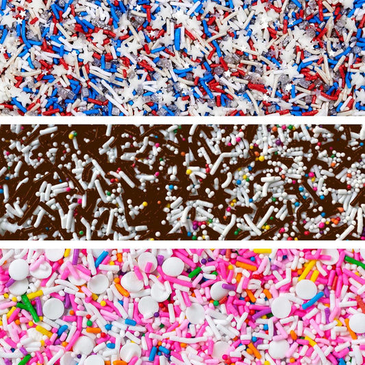 Fancy Sprinkles Party Time Sprinkle Set featuring Classic Twist, Animal Crackers and Superheroes, Assemble! (0.25c)
