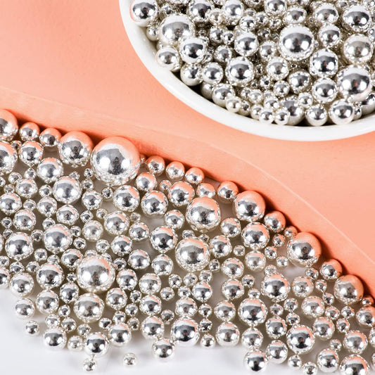 Kasvan Silver Pearl Sugar Sprinkles - Edible Candy Pearls 130g/4.58 Oz, Mix Size, Baking Cake Decorations, Ice Cream Toppings and Cookie Decorating, Wedding Party Chirstmas Supplies