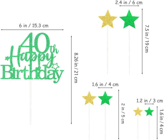 Glittery 40th Happy Birthday Cake Topper with Star,Personalised 40 Birthday Cake Toppers Party Decorations Party Supplies for Boys Girls Green Gold