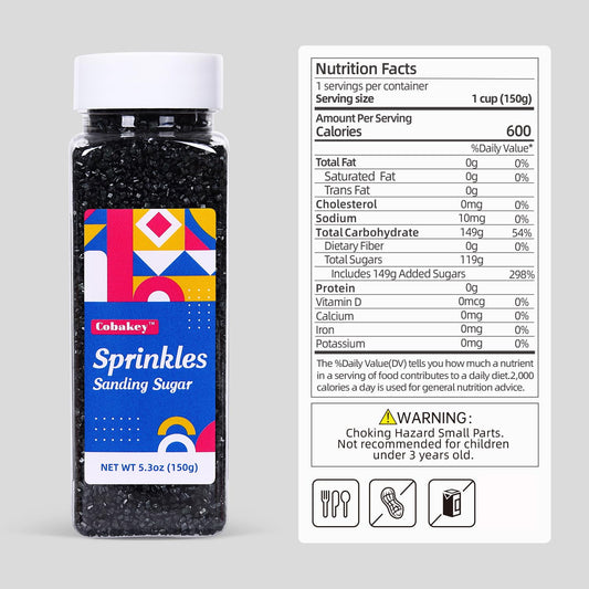 Sanding Sugar Black Edible Sugar Sprinkles Sanding Sugar for Cake Decorating, Sparkling Edible Crystal Candy for Wedding Party Baking Cupcake Cookie Ice Cream Decoration Supplies - 5.3 oz