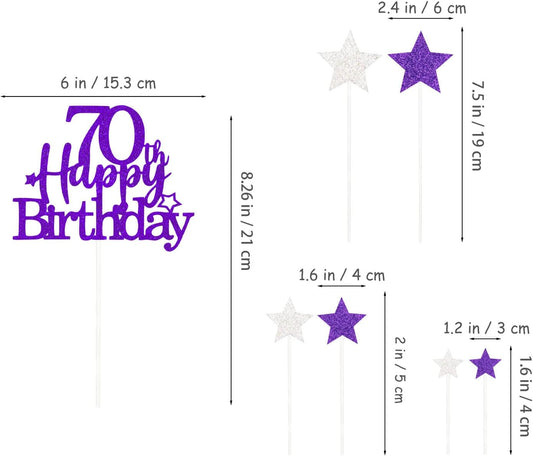 Glittery 70th Happy Birthday Cake Topper with Star,Personalised 70 Birthday Cake Toppers Party Decorations Party Supplies for Men Women Purple Silver