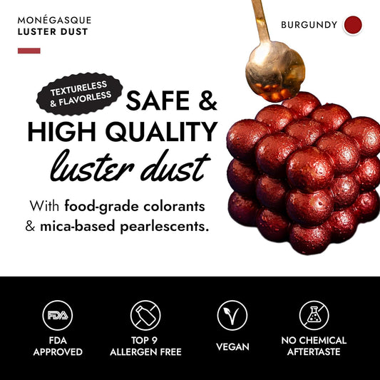 MONÉGASQUE Red Edible Glitter for Drinks 15g – Burgundy Edible Glitter for Cakes & Cocktails - Halloween Drink Shimmer Spray - Red Luster Dust for Drinks, Cocktail, Cake Decorating, & Food Decorations