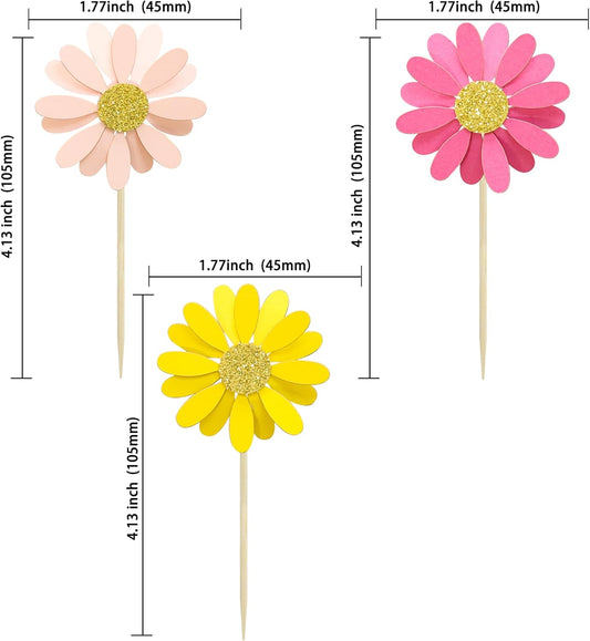 Ephlyn 24Pcs Daisy Cupcake Toppers Daisy Cake Decorations Chrysanthemum Cupcake Toppers Spring Daisy Flower Cake Picks for Birthday Wedding Supplies Multicolor 3