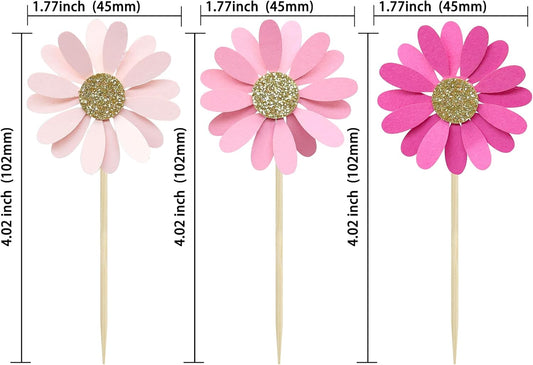 24Pcs Daisy Cupcake Toppers Flower Cake Topper Decorations Daisy Cake Decorations Chrysanthemum Cupcake Toppers Spring Daisy Flower Cake Picks for Birthday Wedding Supplies Rose Red Pink