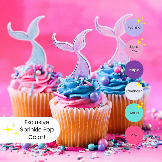 Sprinkle Pop Mermaid Glam Sprinkle Mix| Pink Aqua Fuchsia Lavender Purple Sprinkles with Silver Metallic Dragees| Decorating Sprinkles Made in USA for Girl Birthday Cupcakes Donuts Cakes Cookies, 4oz