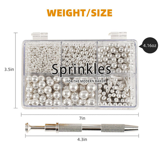 Kasvan silver Mix Sugar Sprinkles - Edible Candy Pearls with 4-Claw Sprinkle Pen,118g/4.16 Oz, Gift Box Pack, Baking Cake Decorations, Ice Cream Toppings and Cookie Decorating, Wedding Party Chirstmas Supplies