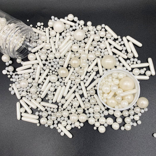 Sprinkles White Pearl Sugar Candy Mix Size Baking Cake Decorations Cupcake Toppers Cookie Decorating Ice Cream Celebrations Shaker Jar Wedding Shower Party (130g/4.58oz)