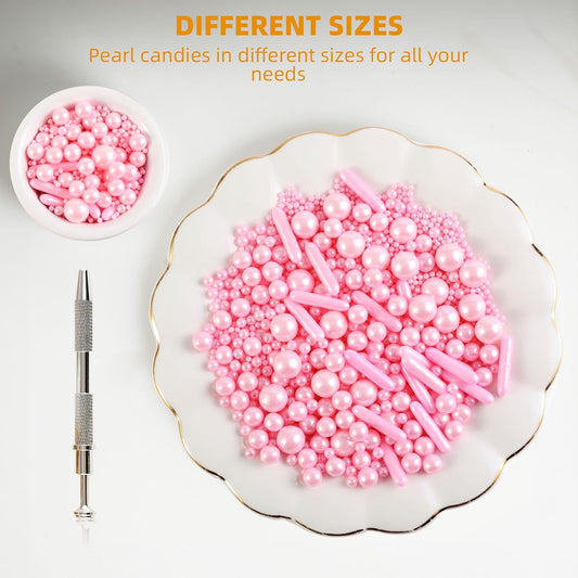 Sprinkles Pink Pearl Sugar Candy Mix Size Baking Cake Decorations Cupcake Toppers Celebrations Shaker Jar Wedding Shower Party (120g/4.2oz)