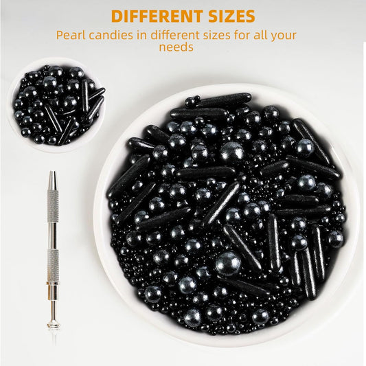 Kasvan Black Mix Sugar Sprinkles - Edible Candy Pearls with 4-Claw Sprinkle Pen,118g/4.16 Oz, Gift Box Pack, Baking Cake Decorations, Ice Cream Toppings and Cookie Decorating (Black)