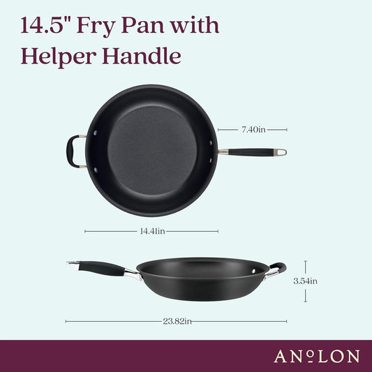 Anolon Advanced Home Hard Anodized Nonstick Frying Pan, 14.5 Inch – Large Skillet with Helper Handle, 14 Inch Nonstick Frying Pan, Durable Cookware - Onyx