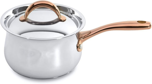 Guy Fieri's Flavortown 3.2-Quart Stainless Steel Sauce Pan with Tempered Glass Lid - Kitchen Cookware with Tri-Ply Base, Oven Safe to 500°F, Dishwasher Friendly, Works with Gas & Induction Cooktops