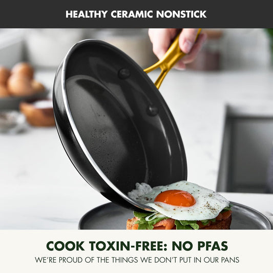 GreenPan 12 Piece Nonstick Swift Cookware Set, Ceramic PFAS-Free Pots & Pans with Lids, Dishwasher & Oven/Broiler Safe to 600F, Kitchen Cooking Set, Sauce, Saute, Stock, Frying Pans, Black/Gold