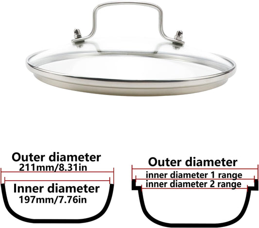 Antrader Tempered Glass Lid,8" Glass Covers for Pots,Pans and Skillets,1Set,Clear