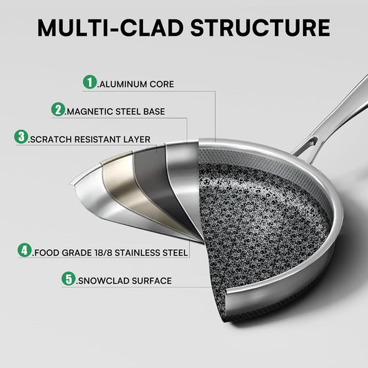 Non Stick Frying Pans 12 inch, Hybrid Frying Pans Nonstick,non stick Stainless Steel Skillets, Dishwasher and Oven-Safe Chef Pan, Induction Compatible Cooking Pan, PFOA Free Cookware
