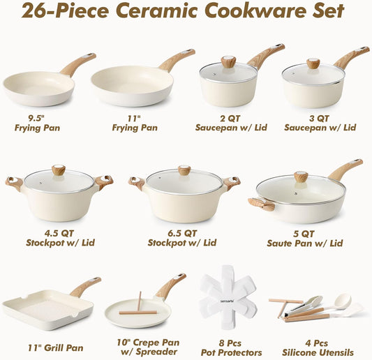 SENSARTE Ceramic Cookware Sets, Pots and Pans Set Non stick, Non toxic Healthy Induction Cookware, 26 Pcs Nonstick Kitchen Cooking Set, w/Frying Pans Set, Saucepans Set