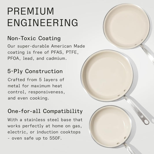 Made In Cookware - 3-Piece (Includes 8",10",12") Ceramic Non Stick Frying Pan Set (Stainless Handle) - 5-Ply Stainless Clad with Stay-Cool Handle - Professional Cookware