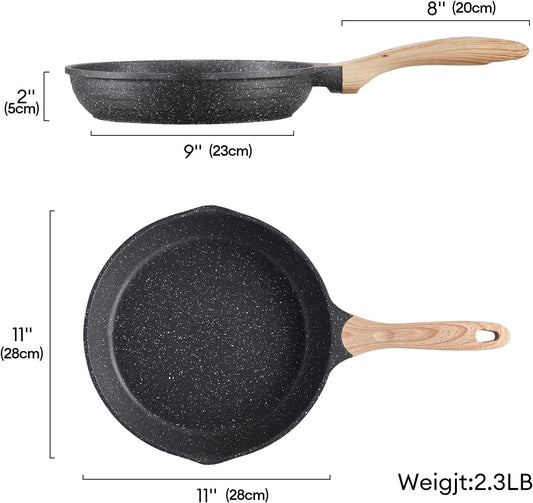 JEETEE 11 Inch Nonstick Frying Pan, Stone Coating Cookware, Nonstick Omelette Pan with Heat-Resistant Handle, Induction Skillet for Eggs (Grey)