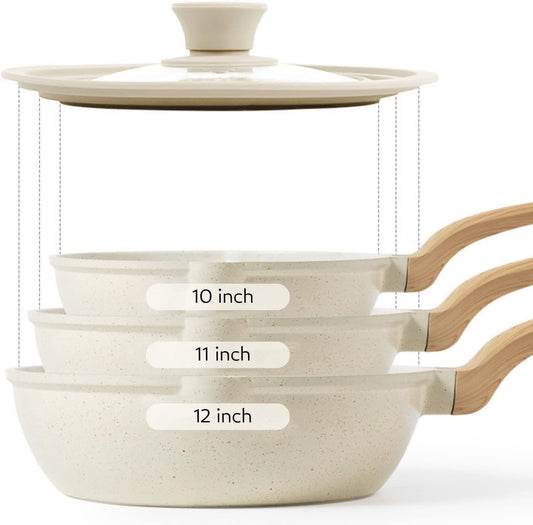 Nonstick Frying Pan, 8/10/12 Inch Stain/Scratch/Crack Proof Chef Pan, Healthy Skillet, PFOA Free Omelet Pan, Dishwasher & Oven Safe, Induction Compatible (12-Inch, Natural Linen)