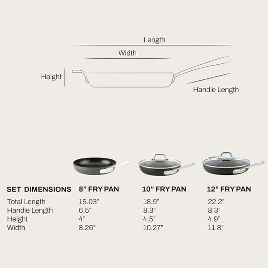 All-Clad HA1 Hard Anodized Nonstick Fry Pan Set – 3-Piece Cookware, 8", 10", 12" Skillets with Lid, Induction Compatible, Oven Safe to 500°F, Lid Safe to 350°F, Black