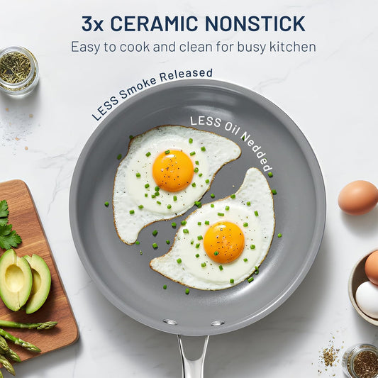 Kikcoin Ceramic Nonstick Frying Pan Skillets - 3 Sizes Omelette Pans for Healthly Cooking, 8+9.5+11 Inch Egg Pan with Stay Cool Handle, Free of PFAS PFOA PTEE, Oven/Dishwasher Safe for Busy Kitchen