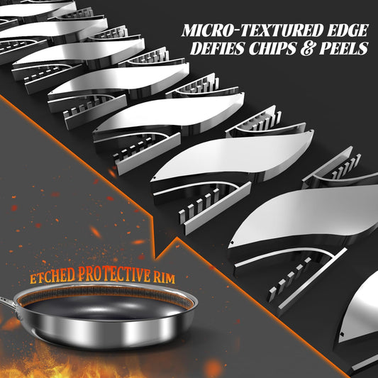 10" Hybrid Ceramic Nonstick Frying Pan, 3-Ply Stainless Steel Skillet, 2-Layer Coating, PFAS & PTFE Free, 9H Hardness & Corrosion Resistance, Dishwasher Safe, Induction Compatible-Black