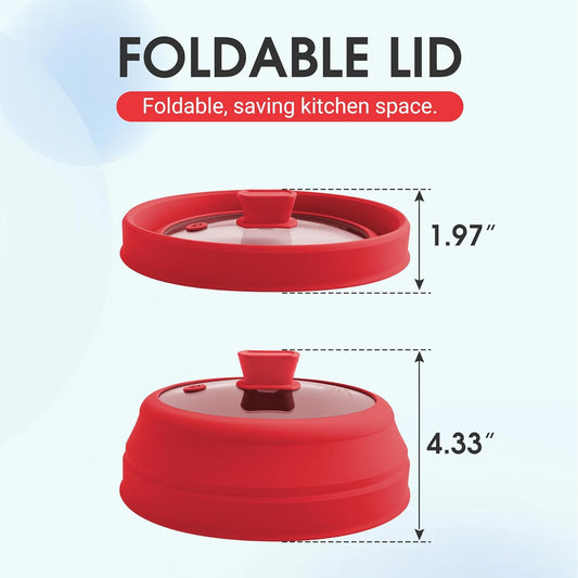 Collapsible Microwave Splatter Lid with Vented Tempered Glass Cover Wok Lid for Microwave Safe, Stockpot Steamer Pot Pan 11-12.5 inch Universal Multifunction Silicone Cover