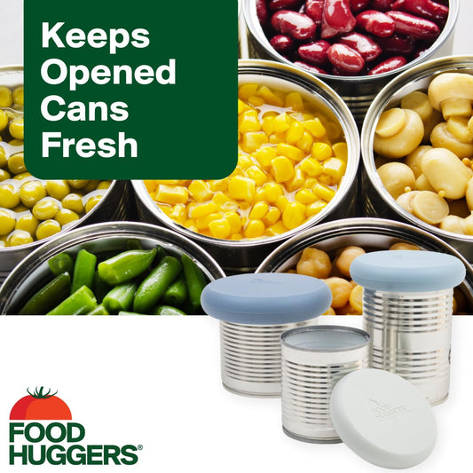 Food Huggers 3 Can Covers | Reusable Can Lids Snugly Seal Cans and Jars | 100% Food Grade Durable Silicone | Plastic Free (Blue)