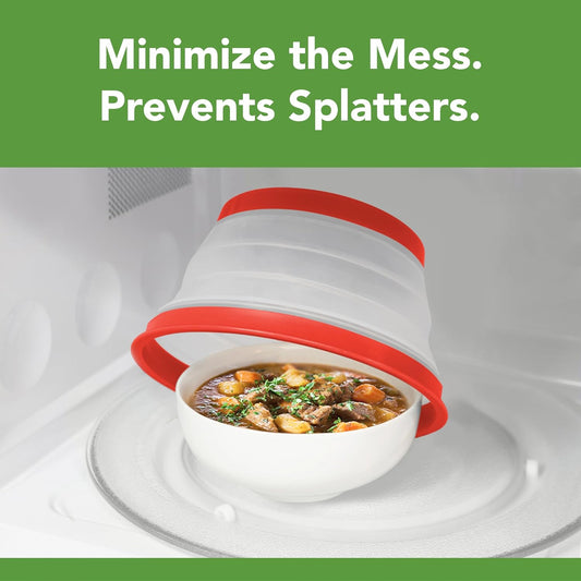 Tovolo Microwave Splatter Cover for Food, Medium (Candy Apple Red) - Collapsible & Vented Silicone Splatter Guard Lid - Microwave Plate & Dish Cover with Handle - BPA-Free Kitchen Gadget for Meal Prep