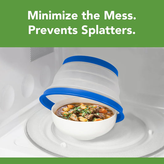 Tovolo Microwave Splatter Cover for Food, Small (Blue) - Collapsible & Vented Silicone Splatter Guard Lid - Microwave Plate & Dish Cover with Handle - BPA-Free Kitchen Gadget for Meal Prep