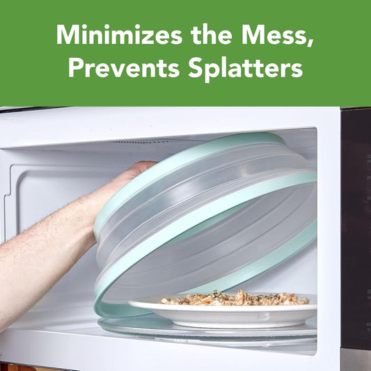 Microwave Splatter Cover for Food Collapsible Glass Microwave Cover Silicone Splatter Guard Dishwasher Safe Splatter Lid for Plates, Bowls, Pots & Stovetop Cooking 10.8" Gray