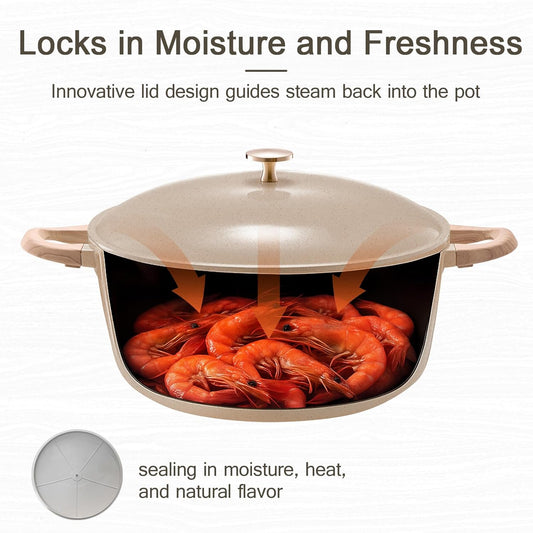 21Pcs Pots and Pans Set with Aluminum Lid, Nonstick Ti-Ceramic Cookware Sets, Induction Cookware Non Stick Cooking Set w/Frying Pans & Saucepans(PFOS, PFOA Free)-Taupe